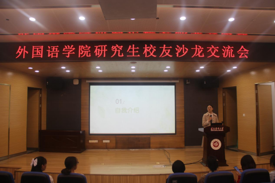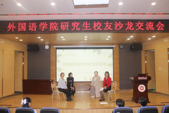 为了更好地发挥校友的榜样引领作用,激发青年学子逐梦成长,2023年4月22日中午,外国语学院在图书馆1号报告厅举办“桃李芬芳”第3期活动—校友沙龙交流会。外国语学院院长王梅、党委副书记唐茜、2020-2021级同学参加活动。2020届翻译专业潘佰桥、2021届商务英语专业秦朝燕、2022届翻译专业周萌为沙龙嘉宾,沙龙由学生党支部书记杨芳主持。