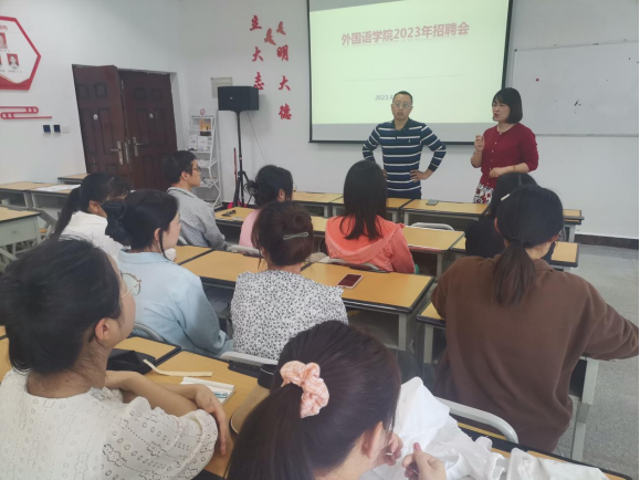 为了让毕业生更好地了解就业前景和获得更多的就业机会,外国语学院积极与广东华启教育有限责任公司对接,将招聘会引进学院,2023年4月19日上午,外国语学院在综合楼专业五教室举办了2023届毕业生现场招聘会,2023届目前未就业的同学参加。