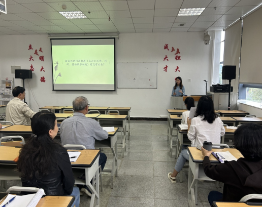 会前,英语语言文学教研室主任张序娅向参会的督导专家们简要地介绍了主备教师和备课课程的概况。随后,按照学校集体备课“五备三统一”规范,邹秀佶老师从课程大纲、教材、教学方法、学习方法、课后训练、教学难点、教学重点和教学进度等方面进行了备课讲解,同时,参加集体备课的教师们也针对备课内容和教学方法等方面积极提出了意见和建议。备课最后阶段,邹秀佶老师提出了关于教学拔高性和扩展性的问题,引起参会专家和教师们的热烈讨论。因备课内容生动且精彩,校专家督导组专家特别要求邹秀佶老师作了3分钟模拟教学,教学过程获得全场一致好评。