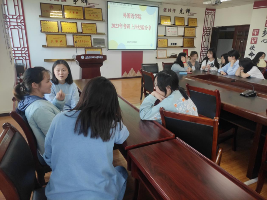 为加强学生对研究生考试的认识,提高考研热情,增强考研信心,加强学院学风建设,2023年4月14日下午,外国语学院在综合楼414会议室开展考验上岸经验分享会。外国语学院2023届考研成功上岸的四位同学唐佳佳、吴俊英、王冬梅、吕洁主讲,2024届所有备战考研的同学和2021级部分同学参加活动。分享由学生党支部书记杨芳主持。