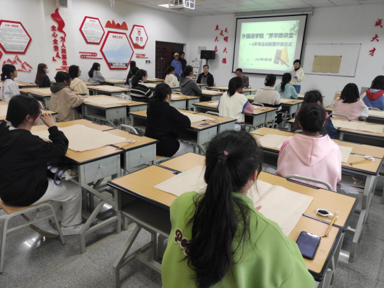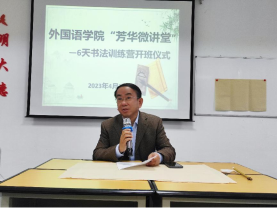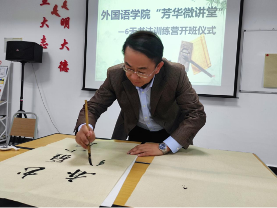谭占海向大家介绍了创办“芳华微讲堂”的初衷。“芳华微讲堂”课程丰富、形式多样,涉及职业技能、中华才艺、乐器入门等提升项目,而今天开班的“6天书法训练营”是第一期活动。羽翼丰满方能展翅翱翔,下一步,学院将继续创新丰富活动形式,开展同学们喜闻乐见的活动,有效促进学院健康、持续和谐发展,助力教育事业高质量发展。