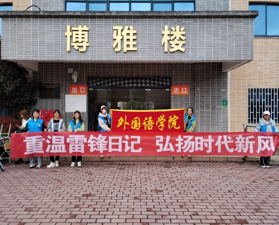 为深入学习贯彻习近平总书记关于弘扬雷锋精神的重要论述和对深入开展学雷锋活动的重要指示要求,进一步弘扬“奉献、友爱、互助、进步”的志愿精神,2023年3月18至19日,外国语学院团委决定在全校范围内开展“学雷锋·办实事·见行动”志愿服务活动,外国语学院18名学生参与。