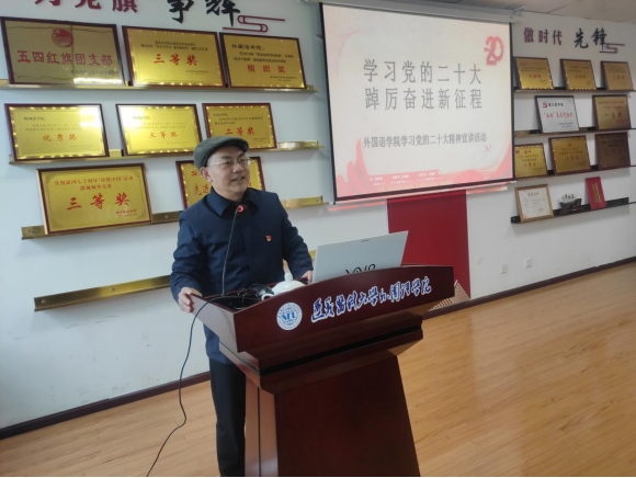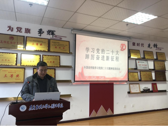 12月8日下午,外国语学院邀请遵义医科大学党委原副书记田宗远教授在外国语学院会议室专题宣讲党的二十大精神。外国语学院全体教师参加本次宣讲,宣讲由外国语学院党委书记谭占海主持。