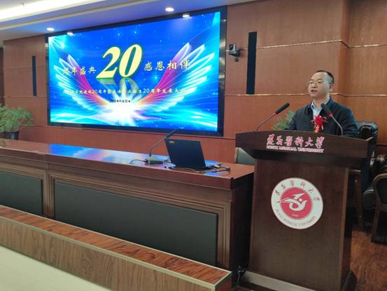 龚其海代表学校致辞,对外国语学院建院暨英语专业招生20周年发展大会表示热烈祝贺。他指出,过去二十年,外国语学院深入贯彻党的教育方针,落实立德树人根本任务,在师资队伍建设、学生培养、教学改革等方面取得了令人瞩目的成绩。并对外国语学院的发展提出三点期望:一是扎根中国大地,继续培养德才兼备、体魄健全、德智体美劳全面发展的高素质外语人才;二是积极应对信息化、全球化带来的新机遇和新挑战;三是讲好中国故事、传播中国声音、弘扬中华文明。面向未来,应当牢记习近平总书记的嘱托,始终牢记“为党育人,为国育才”的初心使命,衷心祝愿外国语学院蒸蒸日上,再创辉煌。