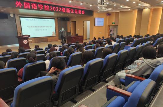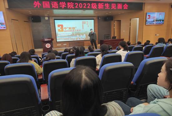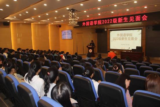为了加强2022级学生的思想教育,以及对未来有更好的目标和规划,2022年11月1日15:50外国语学院在图书馆1号多功能厅开展新生见面会。外国语学院党委书记谭占海、院长王梅、党委副书记唐茜出席会议,综合英语教研室主任何永娇副教授、语言文学教研室副主任樊宁博士、教师兼职班主任老师罗睿和2022级全体新生参加,见面会由学生党支部书记杨芳主持。