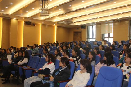 外国语学院院长王梅教授从外国语学院的历史沿革、专业培养目标、课程设置、毕业论文及实习、职业规划等方面讲述,为同学们展示了优秀毕业生的学习经验,分析了外国语学院近五年的就业情况,强调学院要培育学生主动学习的能力,帮助同学们树立目标,找准学习的方向。