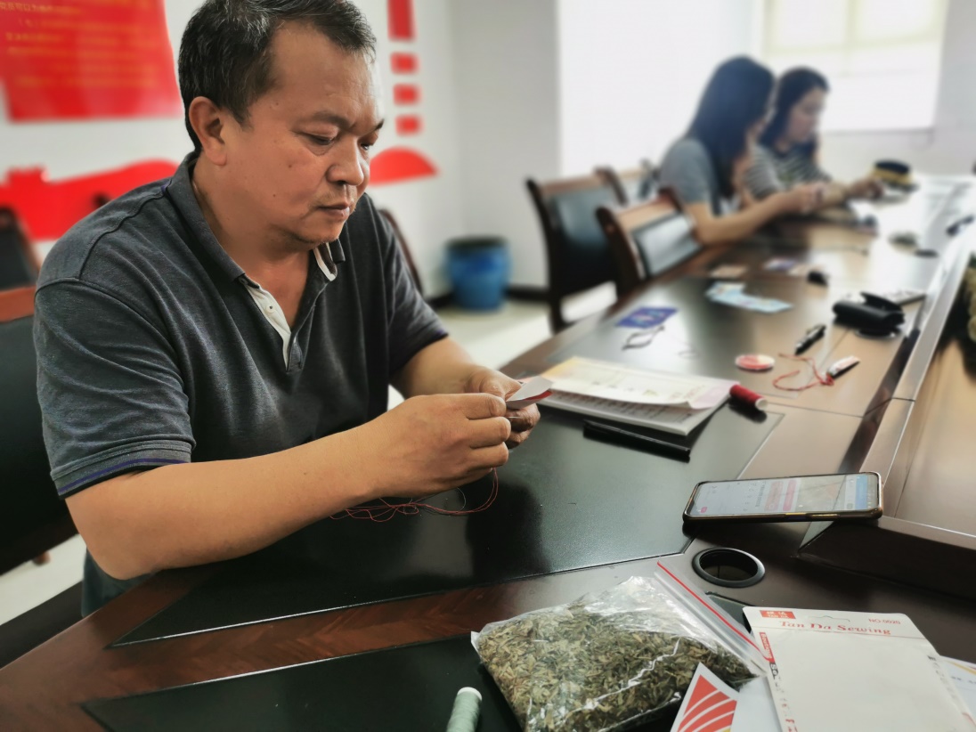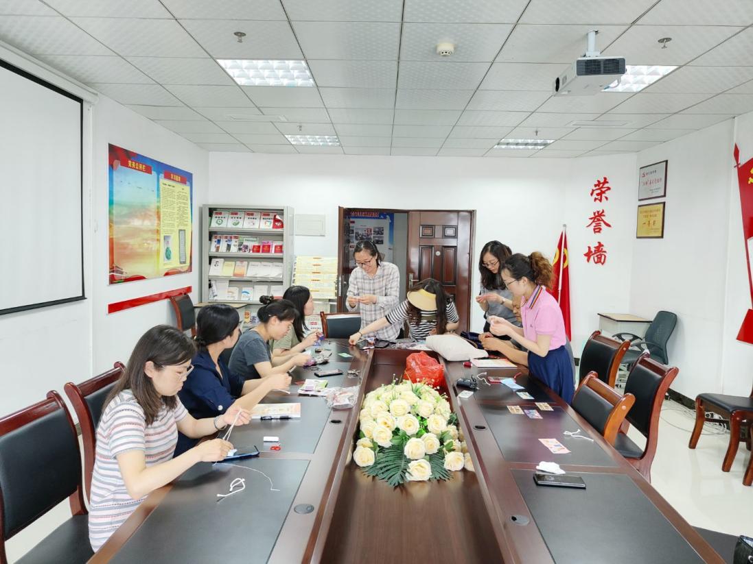活动中,党员们学习了端午节的来历和习俗。三支部副书记陆少辉同志讲解了香囊的功用、寓意及制作材料和制作方法。桌子上的彩绳、针线、挂饰配件等材料一应俱全,大家根据自己的喜好挑选了材料后就开始动手认真制作。没过多久,一个个精美的香囊便出现在大家的眼前。