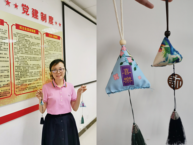 端午佳节至,粽香飘满巷。为庆祝中华传统节日端午节的到来,感受两千多年前传承下来的民俗风情,树立党员的传统文化自信,2022年6月2日下午,外国语学院教工第三党支部开展了“扬传统文化,定中国红心”主题党日活动,支部党员们亲手缝制香囊,用中英文书写屈原作品。