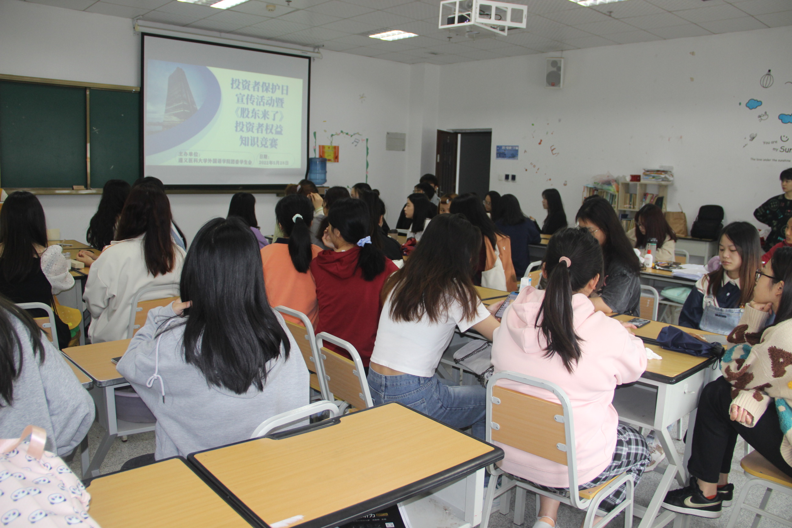 为提高大学生群体的风险防范意识,增强自我保护能力,2022年5月28日10:00,外国语学院在专业九教室举办了《股东来了》投资者权益知识竞赛线下选拔活动。