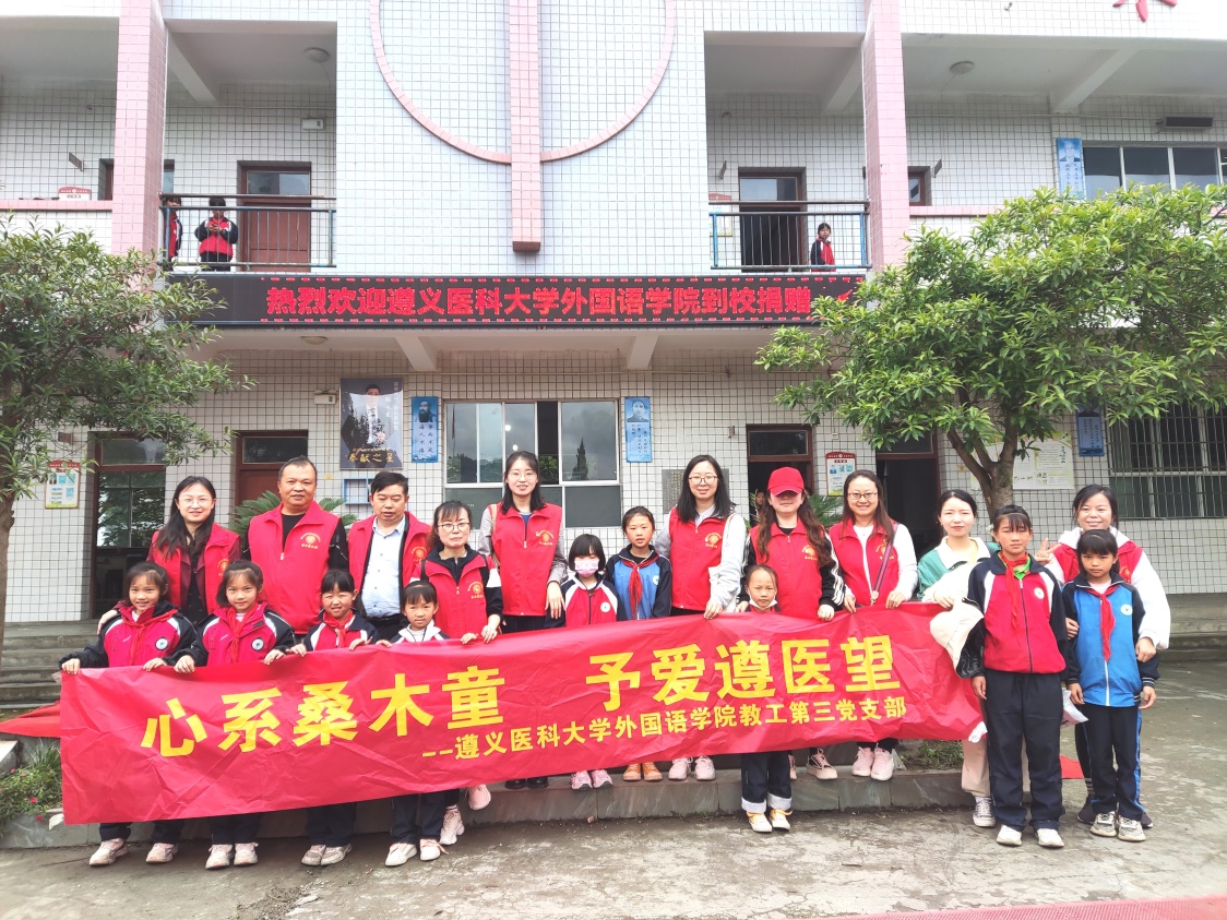 为巩固脱贫攻坚成果,助力乡村振兴,促使我院职工爱岗爱校,在外国语学院党委(工会)的带领下,教工第三党支部全体党员于2022年5月20日到绥阳县洋川镇桑木村桑木小学开展“心系桑木童、予爱遵医望”主题实践活动。