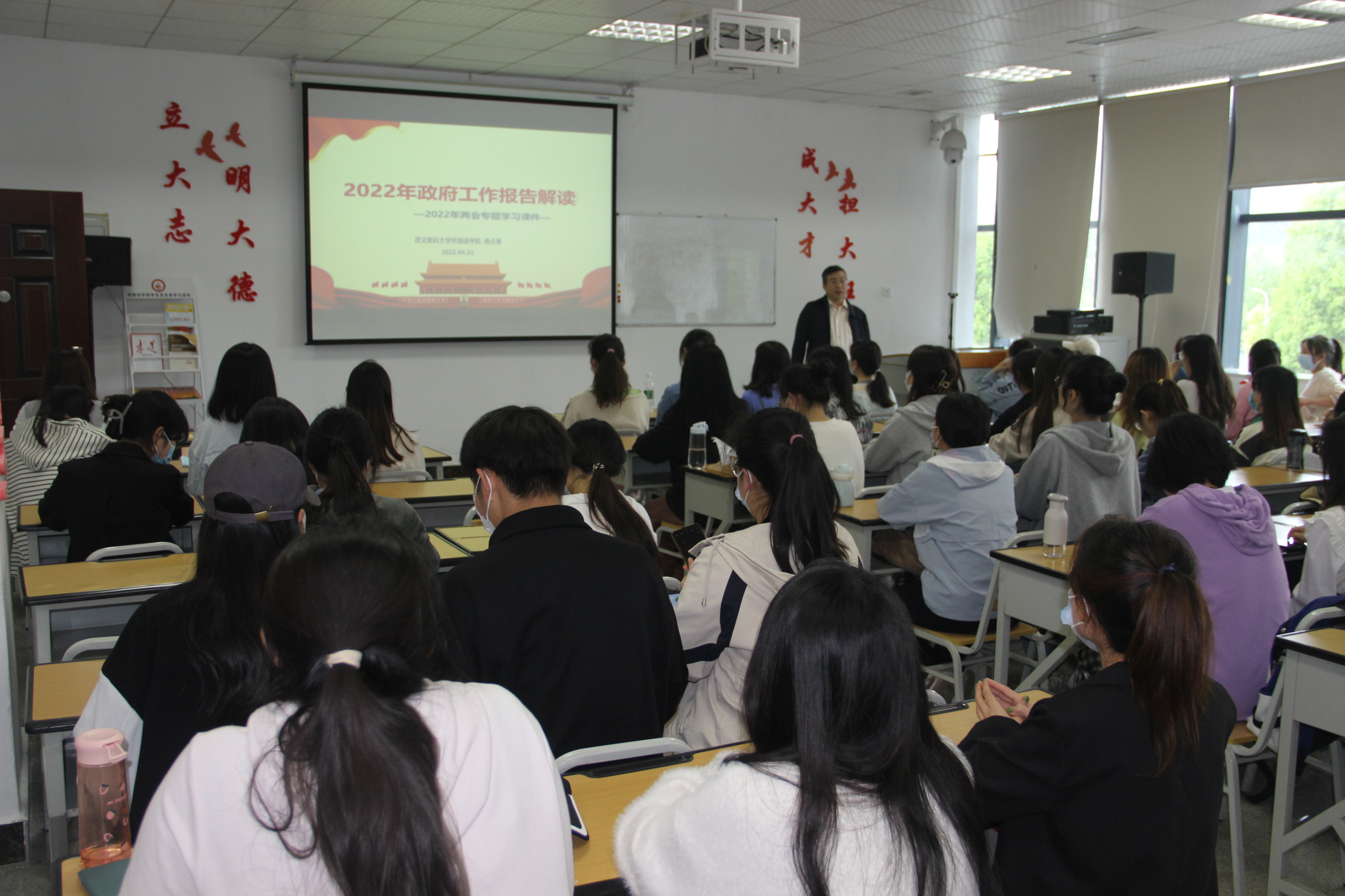 中国的发展之路从来都不是一帆风顺的,更没有一马平川的。2022年4月21日15:30,外国语学院在二楼党员活动室举办了题为《2022年政府工作报告解读》的思政课。2020级全体同学参会,党委书记谭占海主讲。
