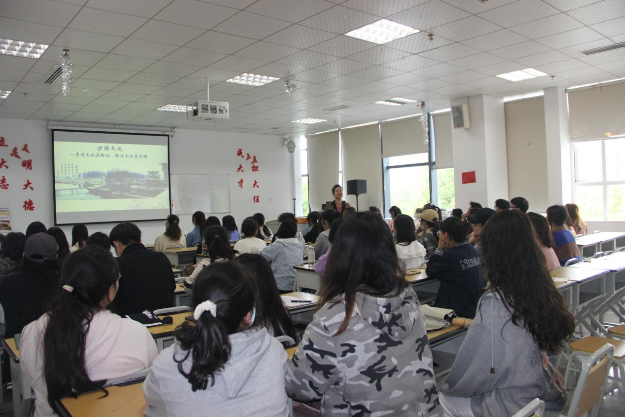 文化的力量,深深熔铸在历史、实践和民族之中,具有物质力量难以匹敌的精神力量。“贵州文化在黔北,黔北文化在沙滩”。沙滩文化萌芽于清代乾嘉年间,以儒学为本,以教育为重,以藏书为业,积淀学术修养并传承中国文化,对我们的社会发展及文化传播起到了至关重要的作用。王梅主要围绕沙滩文化的来源、发展历程、文化构成因素、杰出人才及现状展开讲授。同时从萌芽期、成长期、辉煌期、承续期、余波期五个方面详细分析了沙滩文化的文献“五分法”,加深了同学们对沙滩文化的认识与了解。最后,王梅强调:“读万卷书,行万里路”。书籍就是望远镜,是一盏明灯,让我们看得更远、更清晰。