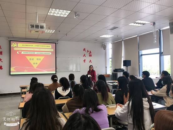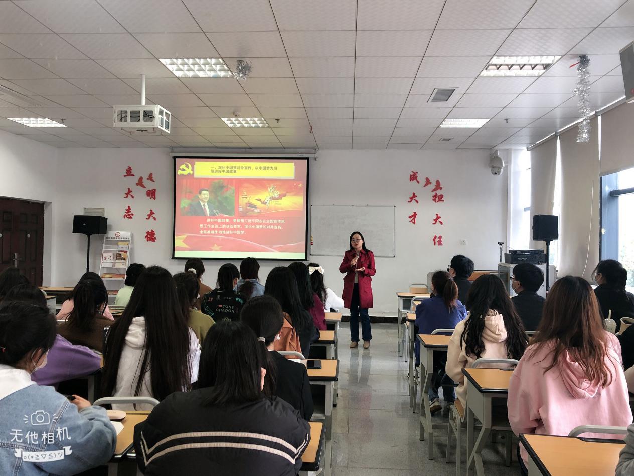 传承东方典藏,智育华夏儿女。为了进一步增强大学生为实现中国梦而不断奋斗的意识,4月18日15点40分,外国语学院在专业五教室开展“中国梦的传承与传播”主题讲座,讲座由外国语学院第二教工党支部书记何永娇主讲,2020级英语专业、商务英语专业全体同学到场聆听。