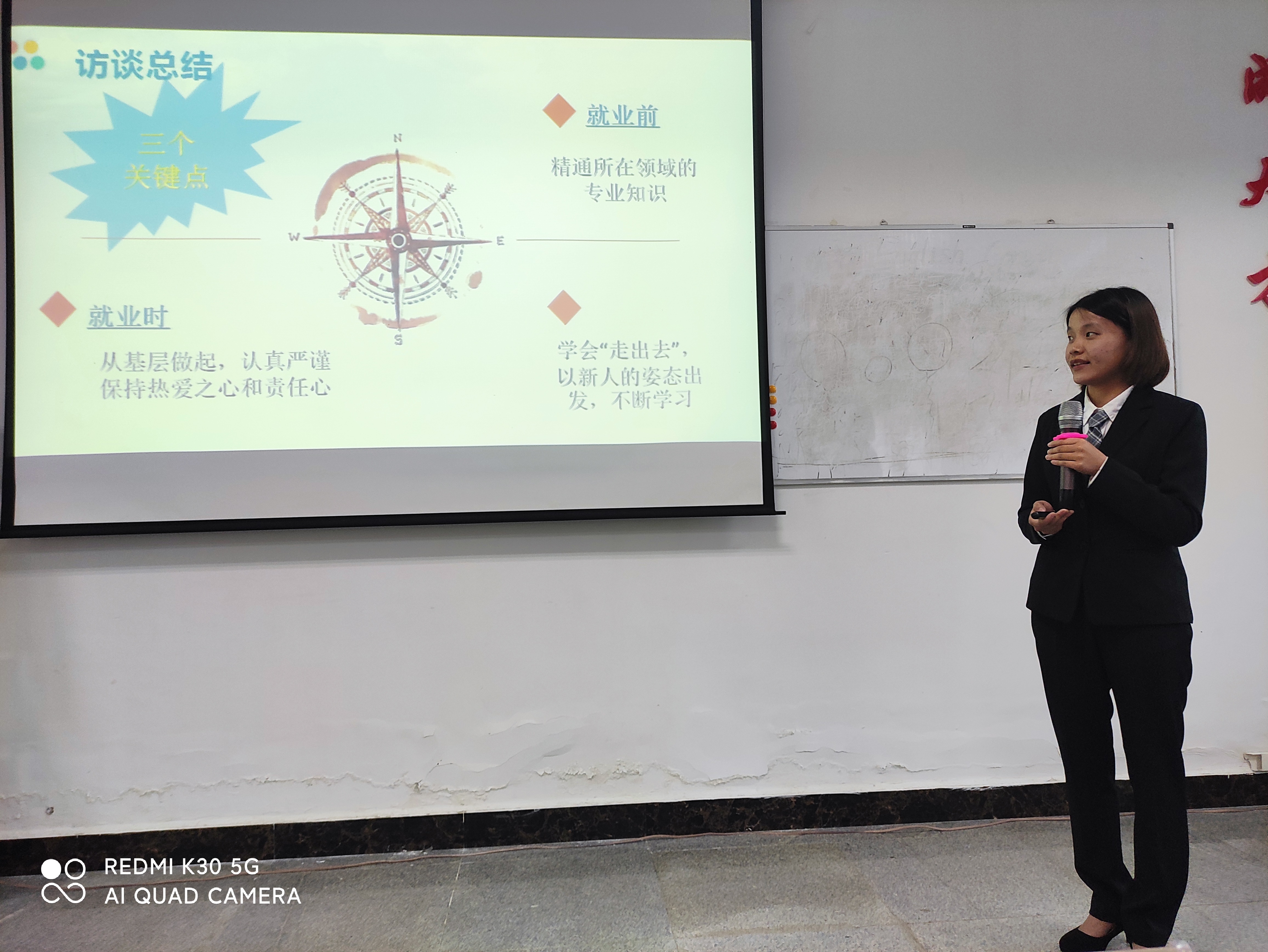 经过访谈实施、访谈报告函审等遴选环节,最终15名学生成功进入汇报比赛。选手们围绕着工作环境、职业素养及技能、薪酬待遇、聘用渠道、发展前景及受访者对大学生未来的规划及成长的建议等方面进行了5分钟PPT汇报。大家访谈的职业涉及有教师、公务员、房产经纪、退伍军人、企业员工等,此次活动发掘出了学生们对职业规划的“好奇”,从而激发了大家探索未来的“力量”,有效推动他们对专业学习、职业规划、就业储备进行了深度思考,受益匪浅。
