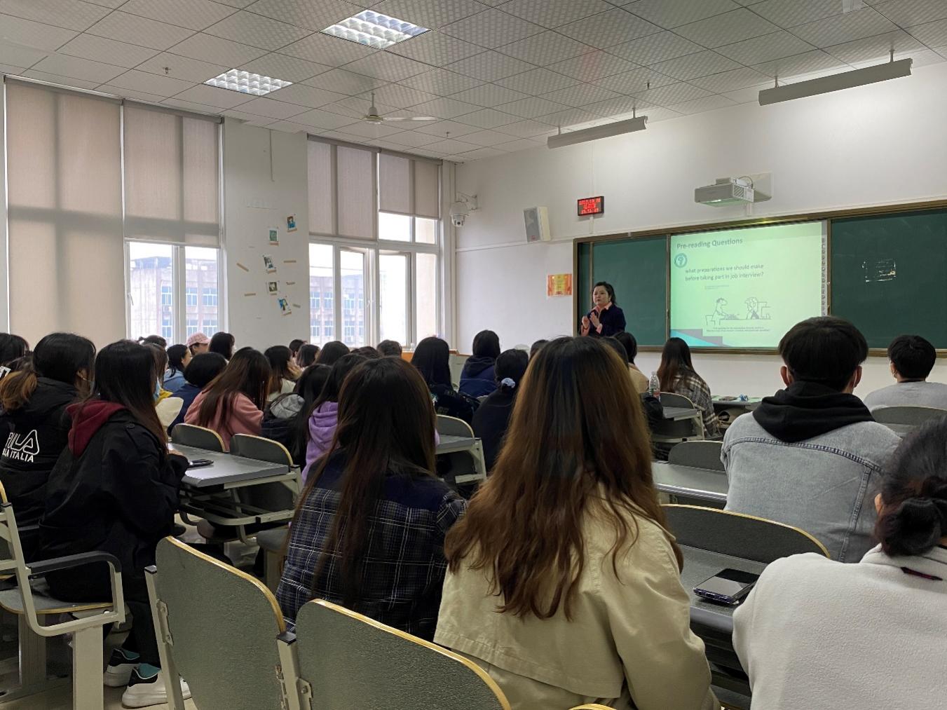 为增强大学生求职技能,提高应对职业面试的心理素质能力。2022年3月31日下午,外国语学院在第一教学楼5-18B教室举办求职面试指导。2020级全体学生参加讲座,讲座由外教老师Hannah主讲。