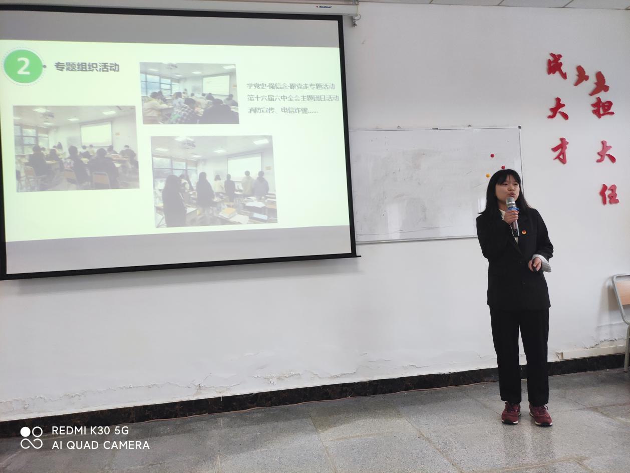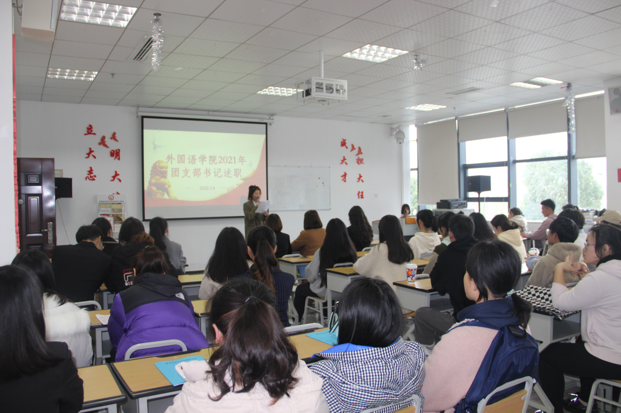 为强化基层团组织建设,总结工作经验和不足,3月4日下午,外国语学院在专业五教室组织召开2021年度团支部工作述职考评会,10个班级团支部书记进行述职汇报。学院学生党支部书记、团委负责人杨芳,第13届和第14届团总支副书记,全体学生干部参加会议。