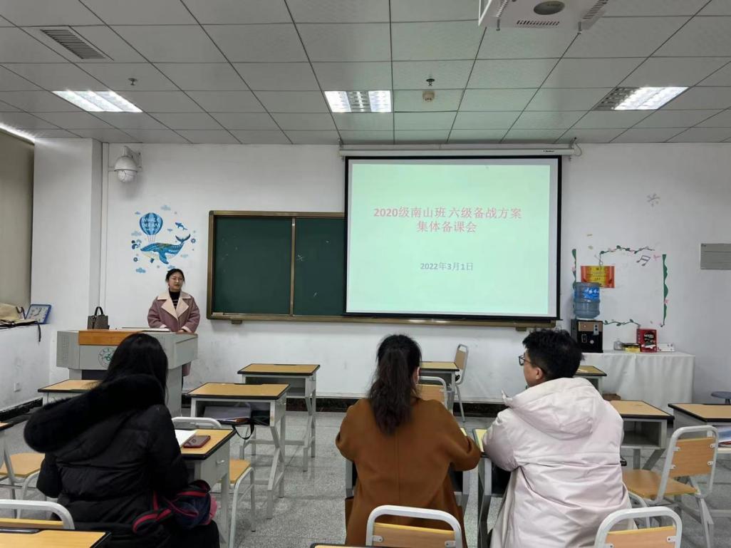 2022年3月1日中午12点,外国语学院南山班教学团队在英语专业9教室召开了本学期第一次教研活动,由团队负责人唐嘉梨老师主持。这次活动的主要内容有四个方面。首先,唐嘉梨老师简要介绍了本团队的人员情况和南山班大致的教学规划,提出除了全面提升南山班学生的语言运用能力,还要为四六级考试提供专业辅导。因此,针对21级南山班的教学,根据团队中的教师各自擅长领域,拆分了教学模块,团队分工更加明确,专人专项,专业专教。针对20级南山班短期的过级目标,由任课老师给出了相应方案。