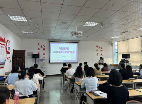为全面回顾2024年的工作情况,展望规划新一年工作愿景,2025年5月13日下午14:30,外国语学院在专业五教室举行2024年度年终考核评比会,出席本次评比会的有院长王梅、党委副书记唐茜等全院教职工。