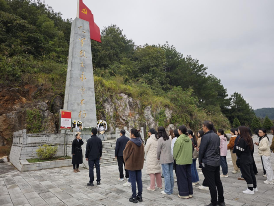 为深入学习贯彻党的二十大精神,持续巩固拓展主题教育和中央八项规定精神学习成果,在中国人民抗日战争胜利80周年之际,外国语学院党委于2025年10月24日组织党员教师赴红军抢渡茶山关战斗遗址,开展“传承红色基因·砥砺育人初心”红色文化教育主题实践活动。