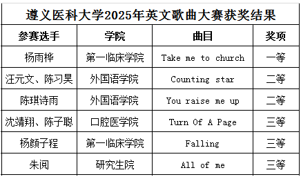 为创新英语学习形式、营造沉浸式学习氛围,激发学生英语学习兴趣与表达热情,2025年11月12日晚,由学校团委、博雅社区与外国语学院、学院关工委联合主办的遵义医科大学2025年“音浪无界·乐动校园”英文歌曲大赛决赛在道德讲堂精彩上演。遵义师范学院音乐与舞蹈学院副教授夏颜、遵义职业技术学院李国鸿,学校外国语学院院长王梅、学校党委统战部副部长李菲、外国语学院综合英语教研室主任何永娇、外籍教师Hannah、Lisa担任评委,以专业视角为赛事把关。来自全校各学院的19支代表队同台竞技,用歌声展现英语魅力与青春风采。