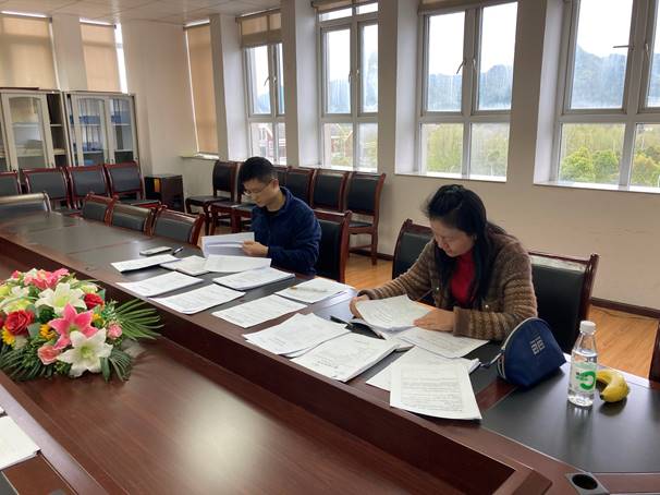 本次检查工作专家组成员包括外国语学院院长王梅教授、英语语言文学教研室主任张序娅副教授、英语语言文学教研室副主任樊宁副教授、英语语言文学教研室吴会娟副教授等。检查工作开始前,张序娅主任向与会专家介绍了本次中期检查工作的具体检查流程。随后,专家分成两组对2022届英语专业29名毕业生的毕业论文初稿和中期检查表等材料进行了详细的审阅和检查。检查过程中,专家们指出了各项材料中存在的问题,主要包括:中期检查表填写不规范、部分学生未提交指导教师批改过的论文稿件、论文中的引用未按照规范进行书写、部分论文的框架结构需要进一步修改等。针对上述问题,各位专家分别提出了整改意见和建议。