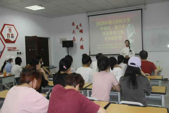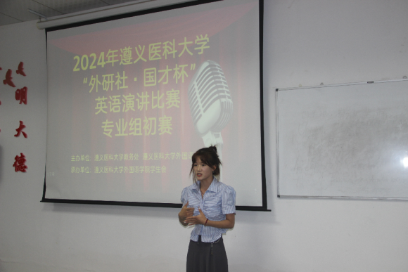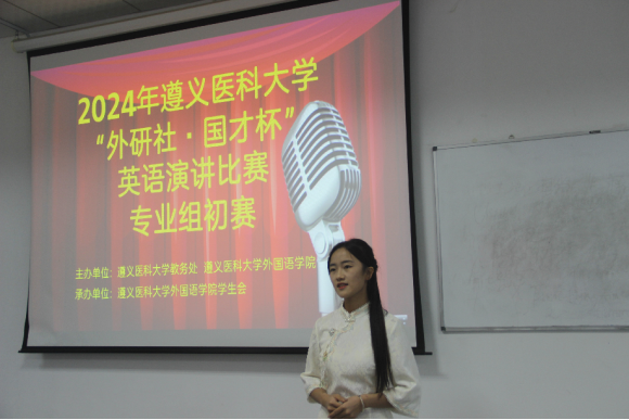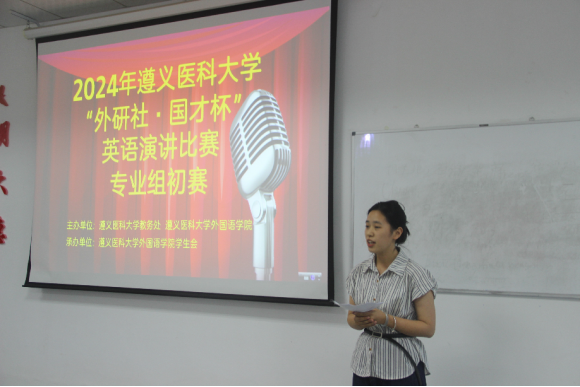 为激发广大同学对英语学习的热情,营造浓厚的英语学习氛围,提高同学们用英语讲好中国故事的能力,2024年9月25日18:00,外国语学院在综合实验楼专业五教室举行“外研社·国才杯”英语演讲比赛专业组初赛。本次比赛由帅月、苏中维、王刚才担任评委,学院26位同学参加。