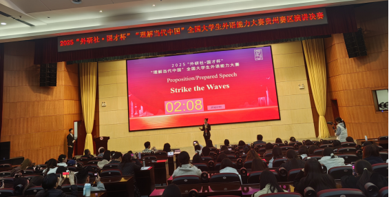 为深化高校外语教育改革,提高外语人才培养质量,由贵州省教育厅主办的2025“外研社·国才杯”“理解当代中国”全国大学生外语能力大赛于11月1日在贵州师范大学举行。该比赛属于教育部公布的全国大学生学科竞赛榜单中的B类赛事,含英语演讲、综合能力和短视频等多个赛项。我校学生在比赛中表现出色,最终斩获2金5银3铜。