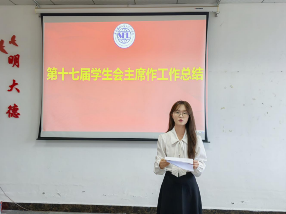 活动在团总支成员刘鲜精彩的开场中正式拉开帷幕,第十七届学生会主席李丽系统回顾了过去一年的工作历程与主要成果,分享了这一年的成长与蜕变。新一届学生会主席熊明红继任发言,明确了未来的工作方向,承诺将带着全体师生的信任与期待,不负重托,砥砺前行。新上任团总支副书记路雅淇强调了党团组织的引领作用与服务同学的宗旨。表彰环节,学院领导、老师为第十七届学生会成员颁发了优秀学生干部荣誉证书及合格证书,充分肯定了他们的辛勤付出;同时,为第十八届学生会主席和部长颁发了聘书。优秀学生干部代表谢玉梅分享了其在任期内的感悟与收获,情真意切,令人动容。