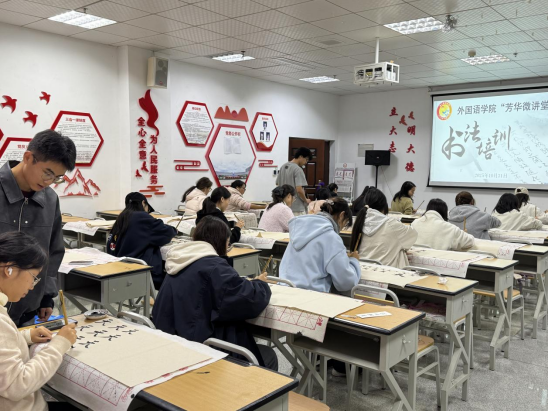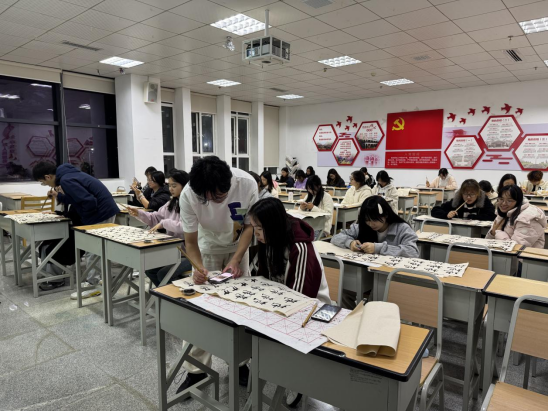 “握笔稳了、运笔顺了”成为学员们的共同心声。“芳华微讲堂”第18期软笔书法训练营已圆满结束,这场由外国语学院学生党支部承办的全程免费书法盛宴,专为书法爱好者量身打造。2025年10月24日至11月21日每周五晚上,该活动在综合楼2楼党员活动室进行,博雅社区、心静社区30名学员全程参与,在墨香中度过了充实的时光。