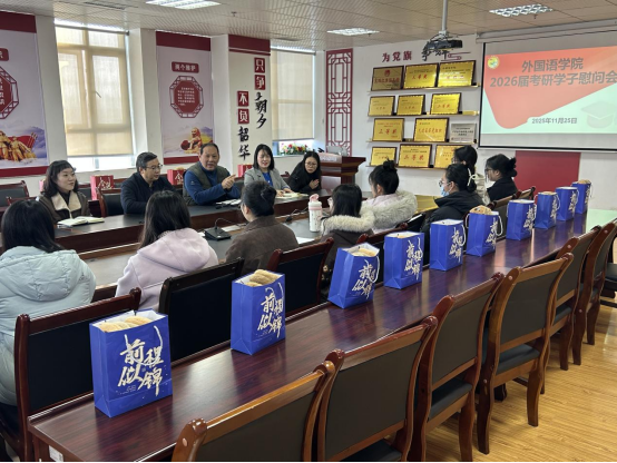 为给冲刺阶段的学子加油鼓劲、纾解压力,2025年11月25日,学院在414会议室召开2026届考研学子慰问会,学校关工委常务副主任李实明、学院党委书记谭占海、党委副书记唐茜出席,已返校的近20名考研学子到场。