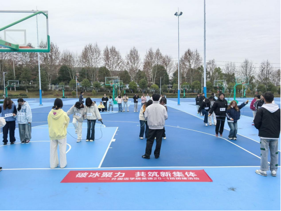 为帮助新生快速打破陌生壁垒,增强班级凝聚力,2025年12月15日9:30,外国语学院英语25-1班在学校北区篮球场开展“破冰聚力,共筑新集体”主题团建活动,学院党委副书记唐茜、学生党支部书记杨芳、团委负责人郑婉萍、50名新生全员参与,在趣味互动中拉近距离、凝聚情谊。