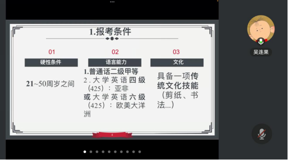 此次分享会兼具实用性与指导性,从政策解读到实操建议,让学生全面了解到国际中文志愿者的工作,搭建了清晰的认知框架,有效解答了学生的报考困惑。未来,学院将持续开展此类分享活动,助力学子拓宽职业视野,为国际中文教育事业培育后备力量。
