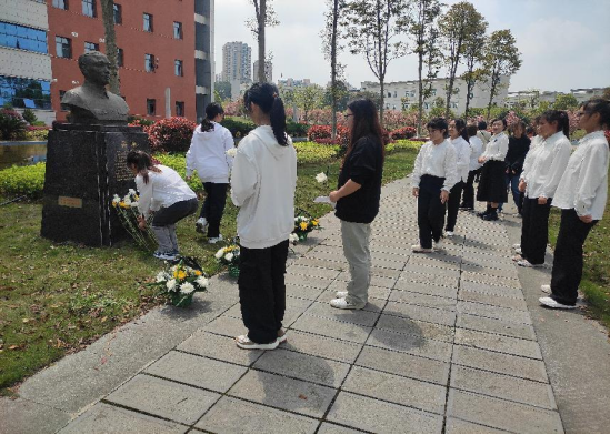 4月4日中午,支部在校内遵医先贤雕像处开展追思缅怀遵医先贤活动。学校学术委员会委员、关工委副主任钱民章教授,学院党委副书记唐茜,支部部分同志参加祭扫。钱民章为大家讲述了我校建校历史和自身的学医经历。她特别强调,青松客已不在,松下客更要前仆后继,要做一个有担当、有责任、不惧风雨的遵医人。同志们将8位教授的雕像一一擦拭干净,龙珍艳和邰为宝分享了吴襄和沈其震两位教授的事迹。雕像前,同学们依次将手中的菊花献给先贤,每一朵都饱含了对先贤的敬仰之情,三分钟的默哀传递了对先贤的深切哀思,庄重的三鞠躬传达了对先贤的无限崇敬。