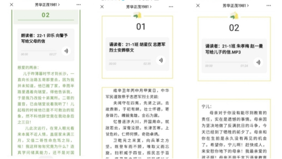 4月3日至5日,支部推出清明节特别策划《声祭先烈》,以青年党员、青年学子诵读烈士家书、祭文的形式,带着大家一起走进烈士们的内心世界,追忆那些为祖国成立、发展而牺牲奉献的先烈们的故事。